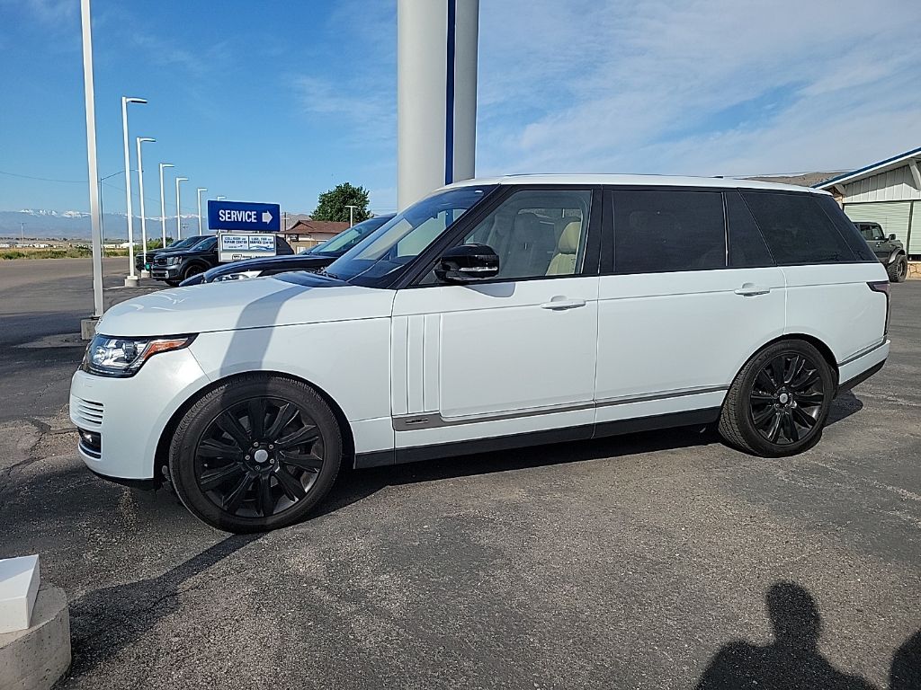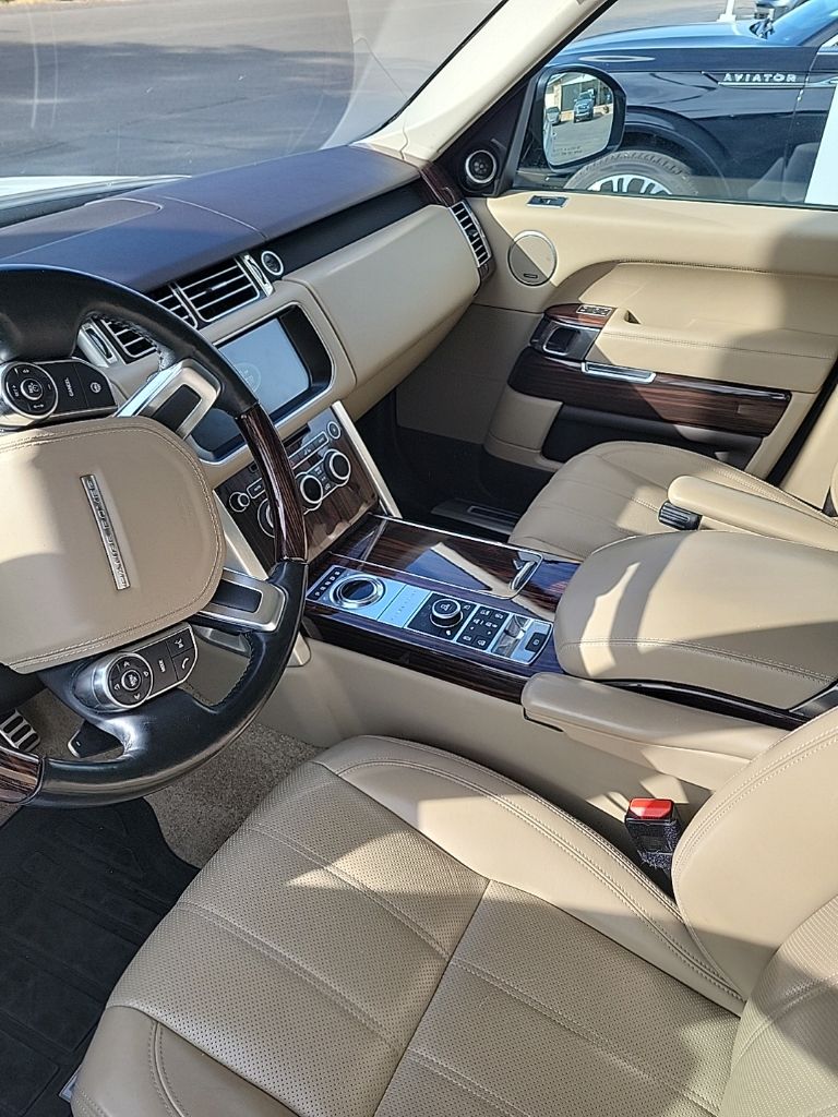 Ebony/Tan/Ebony/Tan Leather, ABS brakes, Alloy wheels, Compass, DVD-Audio, Electronic Stability Control, Front dual zone A/C, Heated door mirrors, Heated Front Bucket Seats, Heated front seats, Heated rear seats, Illuminated entry, Low tire pressure warning, Navigation System, Power moonroof, Remote keyless entry, Traction control. White 2017 Land Rover Range Rover 5.0L V8 Supercharged LWB 14/19 City/Highway MPG Odometer is 33424 miles below market average!